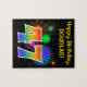 Cette conception amusante et vibrante de puzzle présente un motif coloré inspiré par des feux d'artifice festifs, ainsi que le numéro "47" avec un motif multicolore en dégradé d'inspiration arc-en-ciel, sur un arrière - plan de couleur noire. Il comporte également un nom et un message d'événement personnalisables, comme un message d'anniversaire. Un puzzle comme celui-ci pourrait être une façon amusante d’envoyer un message d’anniversaire pour souligner le quarante-septième anniversaire de quelqu’un. [~Z0000329]
