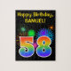 Cette conception amusante et dynamique de puzzle présente un motif coloré inspiré par des feux d'artifice festifs, ainsi que le numéro "58" avec un motif multicolore inspiré arc-en-ciel, sur un arrière - plan de couleur noire. Il comporte également un nom personnalisé et un message d'événement, comme un message d'anniversaire. Un casse-tête comme celui-ci pourrait être une façon amusante d’envoyer un message d’accueil pour souligner le cinquante-huitième anniversaire de quelqu’un. [~Z0000329]
