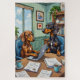 A playful office scene where two determined dachshunds handle their busy workday. From answering calls to typing away at a desk, the charming illustration adds humor to everyday life.