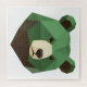Unleash bold wilderness spirit with this striking low poly bear portrait. Crafted from sharp, faceted triangles, the majestic grizzly face features vibrant forest green fur, deep chocolate brown accents on the snout and ears, and a soft cream muzzle that draws the eye. The angular, modern geometric style blends raw power with clean contemporary art.