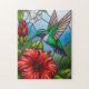 Puzzle Glass Patchwork Hummingbird Garden Floral Mosaic