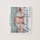 Une façon réfléchie de demander à un membre de la famille ou à un ami d'être la marraine de votre enfant est de lui donner un puzzle customisé de proposition de photo stylisée qu'elle peut sauver comme un gardien. Toutes les images et le libellé sont simples à personnaliser, y compris la citation qui dit "Serez-vous ma mère gardienne ?" (CONSEIL EN MATIÈRE DE PLACEMENT DE L'IMAGE : Un moyen facile de centrer une photo exactement comment vous voulez est de la rogner avant de la télécharger sur le site Zazzle.) Ce modèle d'invitation à propositions customisé propose une typographie minimaliste moderne, une calligraphie manuscrite de style script et une photo de votre choix. Le design noir et blanc sans distinction de genre convient aux marraines, marraines, petits garçons ou filles. C'est une façon unique et élégante de proposer aux parrains avant le baptême, le baptême ou toute autre occasion dans la vie de votre enfant.