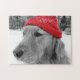 Chiens d'amour ? Vous aimerez ce puzzle fabuleux ! Comporte un tir principal d'un golden retriever beau dans la neige dans un casquette rouge de ski. Photographie noire et blanche, avec la couleur sélective sur le casquette rouge de ski. Grand cadeau pour des amoureux de les chiens !