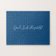 Le puzzle bleu uni comporte "Good Luck, [NAME]" dans une police de texte blanc au centre. Personnalisez le texte drôle dans la barre latérale. Fait un grand cadeau personnalisé pour quelqu'un qui aime un défi difficile. Copyright ©Claire E. Skinner. Tous droits réservés.