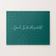 Solid turquoise puzzle puzzle caractéristiques "Good Luck, [NAME]" dans une police de script blanc au centre. Personnalisez le texte drôle dans la barre latérale. Fait un grand cadeau personnalisé pour quelqu'un qui aime un défi difficile. Copyright ©Claire E. Skinner. Tous droits réservés.