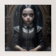 AI Art dépeint une petite fille gothique hantant le puzzle d'Halloween.