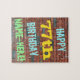 Cette conception amusante de puzzle sur le thème de l'anniversaire comporte un message comme "HAPPY 77th BIRTHDAY, NAME-HERE!", où le nom peut être personnalisé. L'arrière - plan est représenté par un mur en brique composé de briques de couleur rougeâtre. Le texte du message personnalisable comporte des couleurs comme le bleu, le jaune et le vert, et il a un aspect inspiré de celui des graffitis peints. Un puzzle comme celui-ci pourrait être utilisé comme une façon amusante d'envoyer des voeux d'anniversaire à quelqu'un qui célèbre son soixante-dix-septième anniversaire, et qui peut-être aime vraiment faire des casse-tête. [~Z0000285]