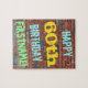 Cette conception amusante de puzzle sur le thème de l'anniversaire comporte un message comme "HAPPY 60th BIRTHDAY, FIRSTNAME!", où le nom peut être personnalisé. L'arrière - plan est représenté par un mur en brique composé de briques de couleur rougeâtre. Le texte du message personnalisable comporte des couleurs comme le bleu, le jaune et le vert, et il a un aspect inspiré de celui des graffitis peints. Un puzzle comme celui-ci pourrait être utilisé comme une façon amusante d'envoyer des voeux d'anniversaire à quelqu'un qui célèbre son soixantième anniversaire, et qui peut-être aime vraiment faire des casse-tête. [~Z0000285]
