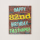 Cette conception amusante de puzzle sur le thème de l'anniversaire comporte un message comme "HAPPY 82nd BIRTHDAY, FIRSTNAME!", où le nom peut être personnalisé. L'arrière - plan est représenté par un mur en brique composé de briques de couleur rougeâtre. Le texte du message personnalisable comporte des couleurs comme le bleu, le jaune et le vert, et il a un aspect inspiré de celui des graffitis peints. Un puzzle comme celui-ci pourrait être utilisé comme une façon amusante d'envoyer des voeux d'anniversaire à quelqu'un qui célèbre son quatre-vingt-deuxième anniversaire, et qui peut-être aime vraiment faire des casse-tête. [~Z0000285]