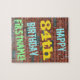 Cette conception amusante de puzzle sur le thème de l'anniversaire comporte un message comme "HAPPY 84th BIRTHDAY, FIRSTNAME!", où le nom peut être personnalisé. L'arrière - plan est représenté par un mur en brique composé de briques de couleur rougeâtre. Le texte du message personnalisable comporte des couleurs comme le bleu, le jaune et le vert, et il a un aspect inspiré de celui des graffitis peints. Un puzzle comme celui-ci pourrait être utilisé comme une façon amusante d'envoyer des voeux d'anniversaire à quelqu'un qui célèbre son quatre-vingt-quatrième anniversaire, et qui peut-être aime vraiment faire des casse-tête. [~Z0000285]
