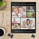 Offrez aux meilleurs grands-parents un cadeau amusant avec ce collage photo personnalisé puzzle noir. Vous pouvez personnaliser avec six photos de famille de petits-enfants, membres de la famille, animaux de compagnie, etc, et customiser l'expression à "Je t'aime" ou "Nous t'aimons", et comment ils sont adressés "Grand-mère et grand-père", "Maman & Pop Pop", etc. Vous pouvez également ajouter les noms des petits-enfants en bas.