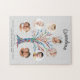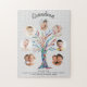 This modern and stylish Grandma jigsaw puzzle is decorated with a colorful mosaic family tree on a soft gray background.