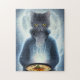 Puzzle Gray Chat en bleu manger soupe dans l'espace