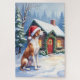 Send festive cheer with this delightful Christmas card featuring a Great Dane wearing a Santa hat beside a cozy snow-covered cabin. Evergreen garlands, glowing lanterns, and gentle snowfall create a warm watercolor winter scene perfect for dog lovers. The blank interior offers plenty of space for personalized messages, making it ideal for gifting, seasonal greetings, and breed-themed stationery collections.