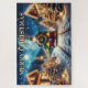 Celebrate the season with this charming Christmas illustration featuring a vintage green train adorned with a festive wreath and glowing lights. The locomotive travels through a snowy village lined with decorated cottages, lanterns, and pine trees under a star-filled sky and radiant full moon. A cozy, magical winter scene perfect for holiday cards, decor, and seasonal gifts.