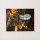 Ce puzzle comporte une grenouille qui a du café près du feu.