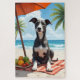 An elegant Greyhound enjoying a refined beach setting with tropical fruits and ocean views. The painterly detail creates a sleek and stylish coastal vibe.