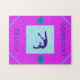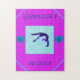 Puzzle de gymnastique avec gymnaste, coeurs et nom personnalisé.