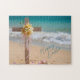 Puzzle Happy Easter Wooden Cross with Lilies on Beach