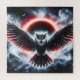 Hibou majestueux déployant ses ailes sous une éclipse céleste lumineuse.