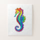 Artistiquement dessiné, lumineux, arc-en-ciel, cheval de mer polygonale sur arrière - plan blanc. Un tatouage brillant.
