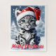 Un mignon bébé léopard des neiges portant le chapeau de Père Noël lors de la saison hivernale enneigée puzzle.