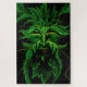 Un visage d'homme vert du folklore celtique sur fond noir, Feuilles vertes