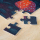 Puzzle coloré avec un renard dans une forêt de champignons. Illustration animale de scène nocturne avec un style magique et fantaisiste.