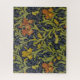 Ce dessin est l'impression d'un dessin de tissu créé par l'artiste britannique William Morris (1834-1896), associé au Mouvement des arts et de l'artisanat. Il représente des fleurs d'iris bleu et orange dans un motif symétrique élégant. La fleur porte le nom d'Iris, déesse grecque de l'arc-en-ciel et messager des dieux Olympiens, transportant des messages vers l'humanité. Les feuilles et les tiges des plantes de l'iris sont représentés en bleu et vert. Il y a quelques oiseaux jaunes perchés sur certains feuillage des plantes. Le motif original a été conçu par William Morris en 1887.