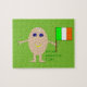 Ce puzzle impressionnant présente un dessin amusant d'un oeuf aux bras et aux jambes. L'oeuf a les bras et les jambes et une petite fissure dans la tête exposant le blanc à l'intérieur. Il a les yeux bleus avec une pupille noire et un grand sourire où le jaune de l'oeuf peut être vu. La coquille d'oeuf a l'air rugueuse. Cet oeuf patriotique irlandais tient fièrement son drapeau et il y a un texte vert sous le drapeau qui dit "tout est à propos de l'engouement". Ce design amusant est idéal pour la Saint Patricks Day ou pour les hommes et femmes irlandais fiers.