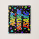 Cette conception de puzzle passionnante, amusante, sur le thème de l'anniversaire comprend le message "HAPPY BANTHDAY, ISAAC" avec les personnages ayant un spectre arc-en-ciel coloré inspiré de dégradé motif, en plus d'un motif arrière - plan de formes étoiles animé. Un puzzle coloré comme celui-ci pourrait être utilisé pour envoyer des voeux d'anniversaire à quelqu'un nommé Isaac. [~Z0000468]