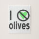 Je déteste les olives. Le design utilise des lettres noires, un cœur vert et le signe international "NON" pour lire "Je déteste les olives". Pour ceux qui ne les "aiment" pas, les détestent vraiment, mais ont un sens de l'humour, aiment rire et ont leur funny bone chatouillée.