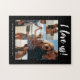 Noir et blanc moderne "I love us" brush script photo collage puzzle avec nom personnalisé et année.