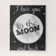 Ce puzzle romantique présente une pleine lune blanche et argentée sur un arrière - plan noir étoilé. La légende en polices modernes en noir et blanc dit "Je t'aime à la lune et au retour".