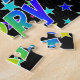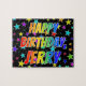 Ce puzzle dynamique, amusant, sur le thème de l'anniversaire a le message "HAPPY BANTHDAY, JERRY" avec les personnages ayant un motif dégradé coloré inspiré du spectre arc-en-ciel, en plus d'un motif arrière - plan de terrain étoilé animé. Un puzzle vibrant comme celui-ci pourrait être utilisé pour envoyer des voeux d'anniversaire à quelqu'un du nom de Jerry. [~Z0000468]