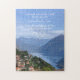 Concentrez-vous sur la merveilleuse nouvelle de l'amour de Dieu avec ce verset de la Bible chrétienne de Jean 3:16 et le puzzle du lac. Jean 3:16 écrit dans la typographie blanche moderne dit : "Car Dieu a tant aimé le monde qu'il a donné son Fils unique, que quiconque croit en lui ne périra pas, mais ait la vie éternelle." Tout le texte est modifiable afin que vous puissiez ajouter votre verset biblique préféré ou texte personnalisé inspirant. J'ai pris cette photo des Alpes, du lac de montagne et du village européen en Suisse. Vous pouvez également remplacer ma photo par l'une de vos photos préférées pour une décoration maison inspirante. Ce puzzle serait un grand cadeau encourageant pour un ami. Ce serait une façon amusante et créative d'amener la Parole de Dieu dans votre maison.