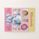 Puzzle de 30 pièces pour enfants. Avec un éléphant mignon, avec des étoiles et des coeurs d'amour. Ajoutez un nom, une initiale et une photo. Plan de couleurs : rose et jaune Idée cadeau pour enfants.
