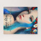 Dream Big and Live Your Fairy Tale quote. Jolie fille féerique enchantée avec cheveux bleus et fleurs rouges et blanches dans ses cheveux et yeux bleus. Imaginaire art ai art. générativecontent