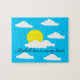 C'est l'un de mes designs préférés. C'est simple, mais si doux. Le soleil sourit. Le ciel est agréable. Et les beaux nuages bouffants passent. Personnalisable . Travail original; © Sharon Lee Hudson. Tous droits réservés.