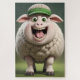 Un joyeux mouton de type dessin animé debout sur l'herbe.