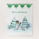 Puzzle Joyeux Noël ! Snowman avec chat et chiot