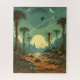 jungle Alien avec une silhouette mystérieuse dans un style d'art rétro de couverture de science-fiction.