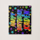 Ce design amusant, excitant, sur le thème de l'anniversaire de puzzle comprend le message "HAPPY BANTHDAY, KADEN" avec les personnages ayant un motif dégradé coloré inspiré du spectre arc-en-ciel, en plus d'un motif arrière - plan vedette. Un puzzle vibrant comme celui-ci pourrait être une façon amusante de reconnaître l'anniversaire de quelqu'un nommé Kaden. [~Z0000468]