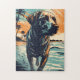 Design graphique coloré d'un labrador sur une plage tropicale avec palmiers. Un cadeau génial pour le propriétaire du Labrador et l'amant du Labrador.