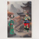 The picture is the Lady in modern Manchu costume and Traditional Commander, military uniform. The background is Chinese landscape painting. The background is a tall religious building with curved roofs. It is a great gift for a person who loves Chinese landscape paining.