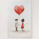 Illustration minimaliste et réconfortante d'un couple tenant la main, relié par un ballon rouge en forme de coeur qui flotte au-dessus d'eux. Le design simple, la texture aquarelle et les éclaboussures douces de couleur sur un arrière - plan blanc donnent une impression douce et rêveuse à l'oeuvre, symbolisant l'amour et la convivialité d'une manière pure et innocente.