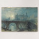 Château d'Alnwick. Joseph Mallord William Turner (1775 - 1851). Un beau paysage nocturne dans les tons bleu foncé. Au premier plan se trouve un groupe de cerfs. Au milieu il y a un pont au-dessus de la rivière. La lune est dans le ciel du coucher du soleil. Reproduction d'oeuvres d'art célèbres dans le domaine public.