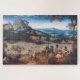 Pieter Bruegel l'Ancien (1525-1530 - 9 septembre 1569) fut l'artiste le plus important de la peinture de la Renaissance néerlandaise et flamande, peintre et graveur de Brabant, connu pour ses paysages et ses scènes paysannes (ce qu'on appelle la peinture de genre); il fut un pionnier dans la réalisation des deux types de grands peintures. Les historiens de l'art pensent qu'il est né à Breda ou à Breugel (un village de la commune de Son en Breugel), tous deux situés dans la province hollandaise actuelle du Brabant-Nord. Il a été une influence formative sur la peinture hollandaise de l'âge d'or et plus tard la peinture en général dans ses choix innovants de matière, comme l'une des premières générations d'artistes à grandir lorsque les sujets religieux avaient cessé d'être l'objet naturel de la peinture. Il ne peint pas non plus de portraits, l'autre pilier de l'art néerlandais. Après sa formation et ses voyages en Italie, il retourne en 1555 pour s'installer à Anvers, où il travaille principalement comme un créateur prolifique de gravures pour le principal éditeur de l'époque. Ce n'est qu'à la fin de la décennie qu'il a changé pour faire de la peinture son principal médium, et toutes ses célèbres peintures viennent de la période suivante, un peu plus de dix ans avant sa mort précoce, alors qu'il était probablement dans la quarantaine, et à l'apogée de ses pouvoirs. En plus de regarder vers l'avant, son art revigore des sujets médiévaux tels que les drolleries marginales de la vie ordinaire dans des manuscrits illuminés, et les scènes du calendrier des travaux agricoles mis en scène dans les arrière - plans paysagistes, et les met à une échelle beaucoup plus grande qu'auparavant, et dans le médium coûteux de la peinture à l'huile. Il fait de même avec le monde fantastique et anarchique développé dans les estampes Renaissance et les illustrations de livres. Citation : Wikipedia