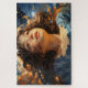 Une jeune fille aux cheveux auburn portant un haut bleu clair et un collier d'or regarde de façon rêveuse tandis que le vent souffle dans ses cheveux. Un ciel bleu foncé avec des nuages blancs et oranges est assis derrière elle. C'est le moment qui change tout.