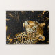 Magnifique imprimé de guépard Leopard sur ce puzzle. Noir et or avec ambiance safari jungle. Disponible en plusieurs tailles.